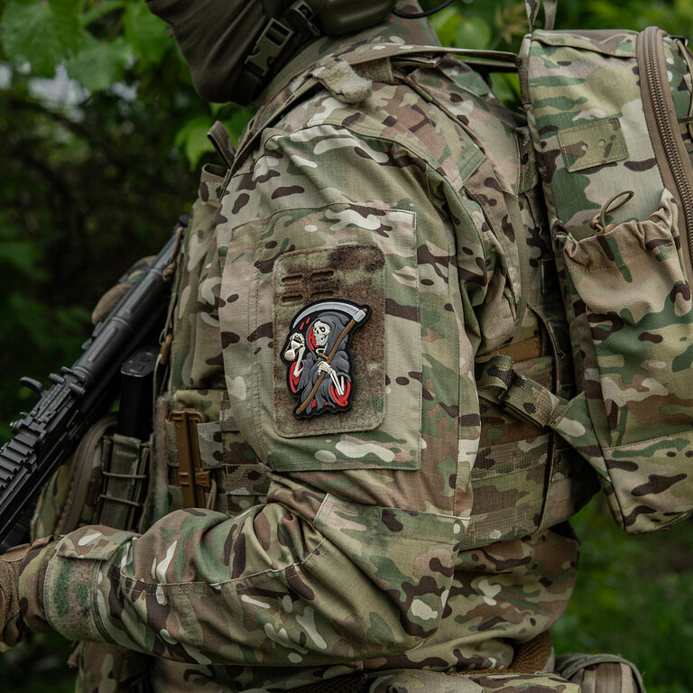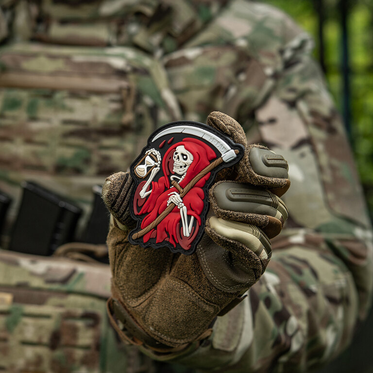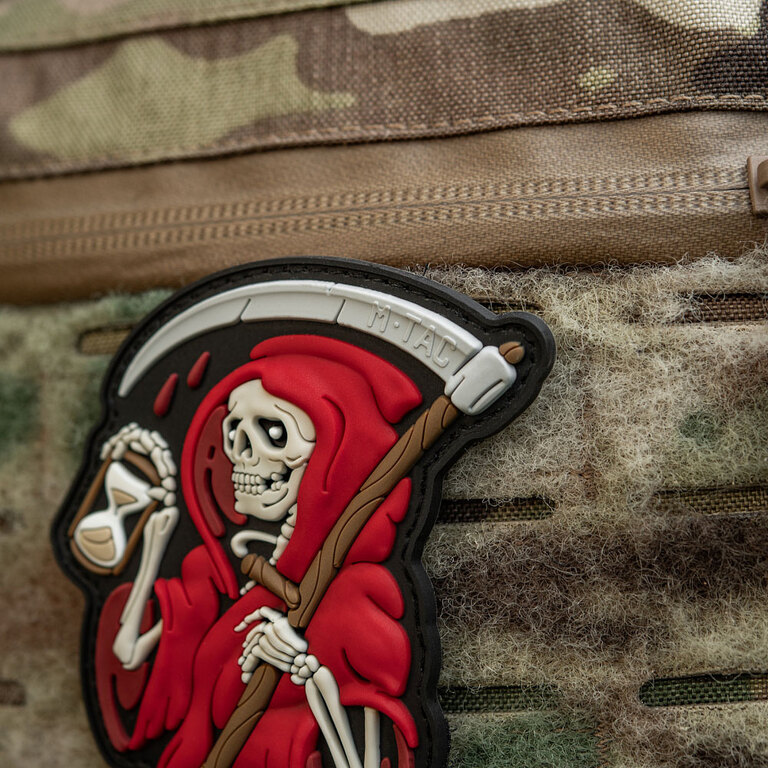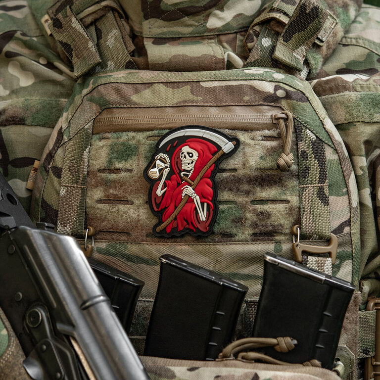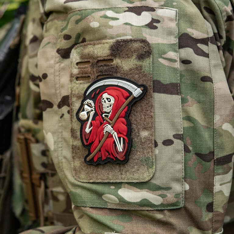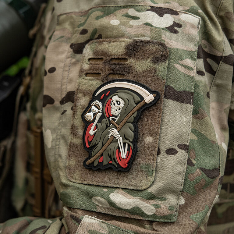 Petița Operator Time M-Tac amintește că timpul trece și fiecare pas poate decide. Moartea cu o clepsidră este un simbol puternic, care subliniază gravitatea momentului și oferă echipamentului un aspect inconfundabil.