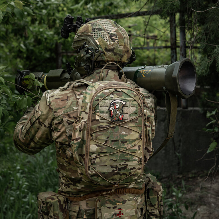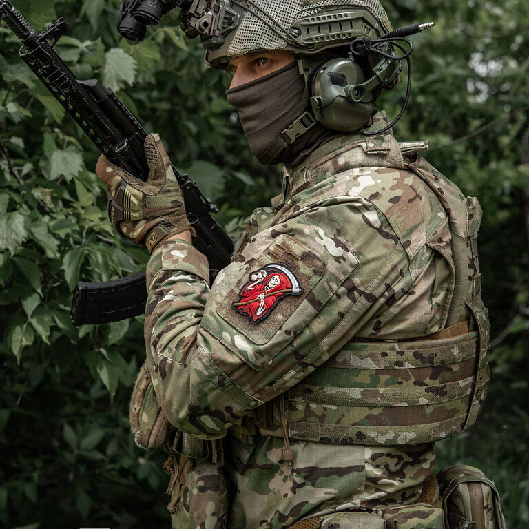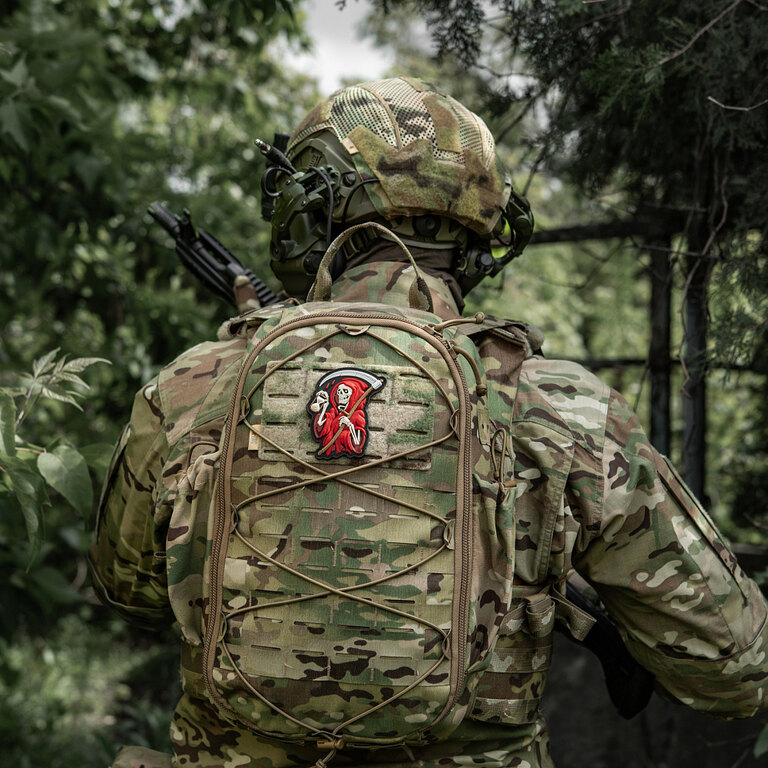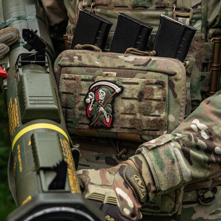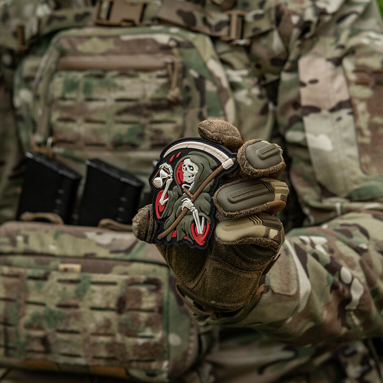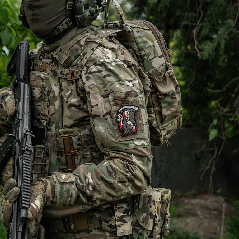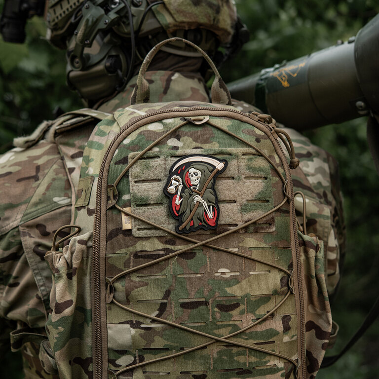 Petița Operator Time M-Tac amintește că timpul trece și fiecare pas poate decide. Moartea cu o clepsidră este un simbol puternic, care subliniază gravitatea momentului și oferă echipamentului un aspect inconfundabil.