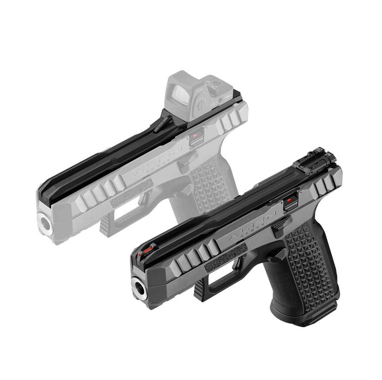Alien Remus Optic Kit în calibru 9x19 este o evoluție a unei construcții cunoscute de la Laugo Arms – mai mic, mai rapid și pregătit pentru utilizare reală. Remus îmbină precizia unei arme de concurs cu practicitatea apărării de zi cu zi. Datorită axului extrem de jos al țevii, montării rigide și sistemului inteligent de preluare a gazelor, gestionează tragerea rapidă cu un recul minim. Rezultatul? Tragere controlată, precizie care persistă și siguranță în orice situație.