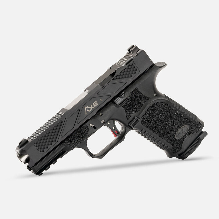 Pistolul BUL AXE C Hatchet / calibru 9×19 are un reținător de închizător mărit și un reținător pentru magazie cu posibilitatea de a alege partea. Colțurile de montaj ale armei sunt din oțel inoxidabil și au puncte pentru o demontare mai ușoară.