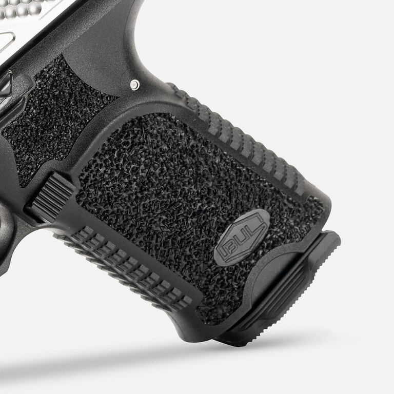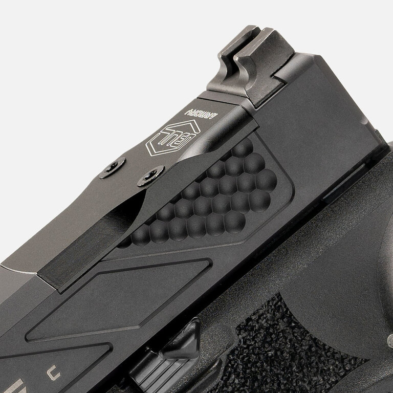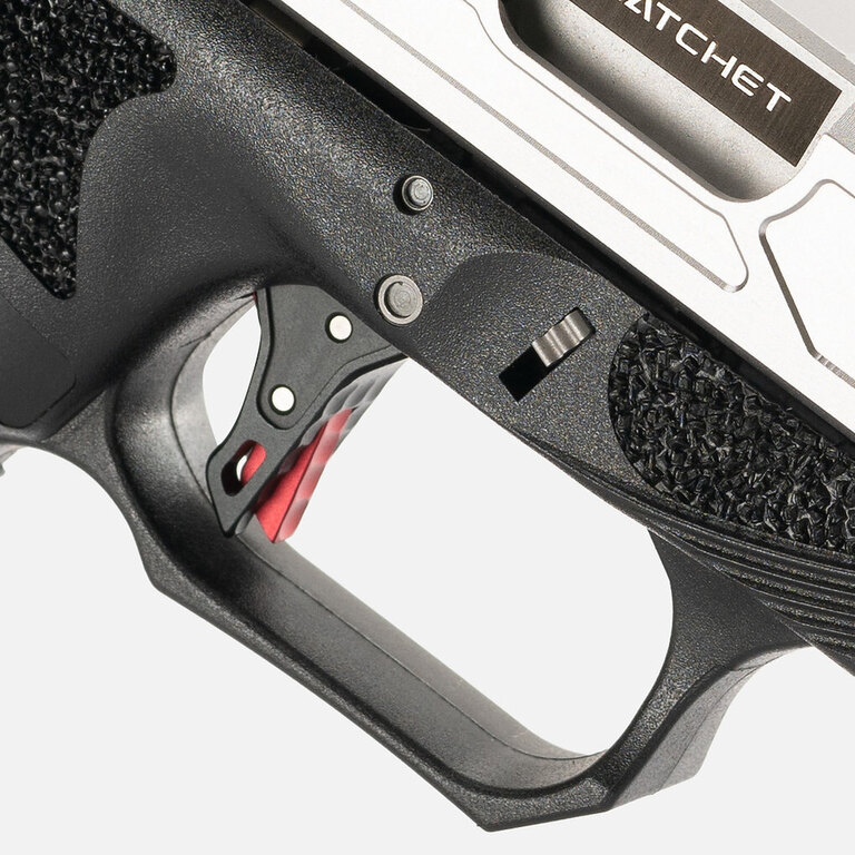 Pe închizătorul armei există crestături în stil Hatchet în partea din față și spate. Cadrul armei are un cioc de castor poziționat sus și prelungit, iar tragaciul are o dublă decupare – așa-numitul undercut. Pe cadrul armei se află suporturi pentru degetul mare pe ambele părți – thumbrest. Toate acestea pentru un prindere fermă.