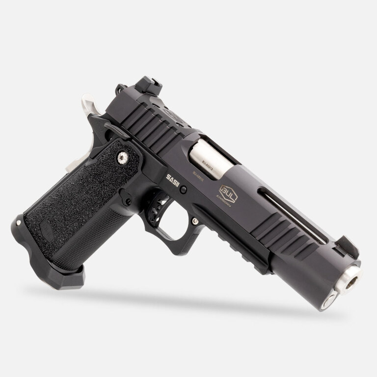 Printre principalele beneficii ale pistolului BUL SAS II TAC 5" se numără fără îndoială fabricația precisă din cele mai calitative materiale, inclusiv un cadru din aluminiu și un glonț din oțel inoxidabil, care este echipat cu striații și tăieturi pentru reducerea greutății. Gura magazinului TAC din aluminiu poate conține un încărcător cu capacitate de 16 cartușe.