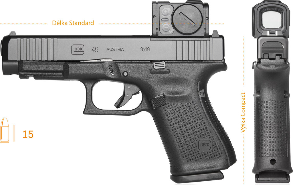 Pistolul Glock G49 MOS / calibru 9×19 este o alegere clară pentru toți trăgătorii care cer de la arma lor fiabilitate absolută combinată cu ergonomie maximă și confort atât la purtat, cât și la tragere. Cu această armă nu veți fi dezavantajați nici pe arena mondială IPSC, nici în agitația orașului urban.