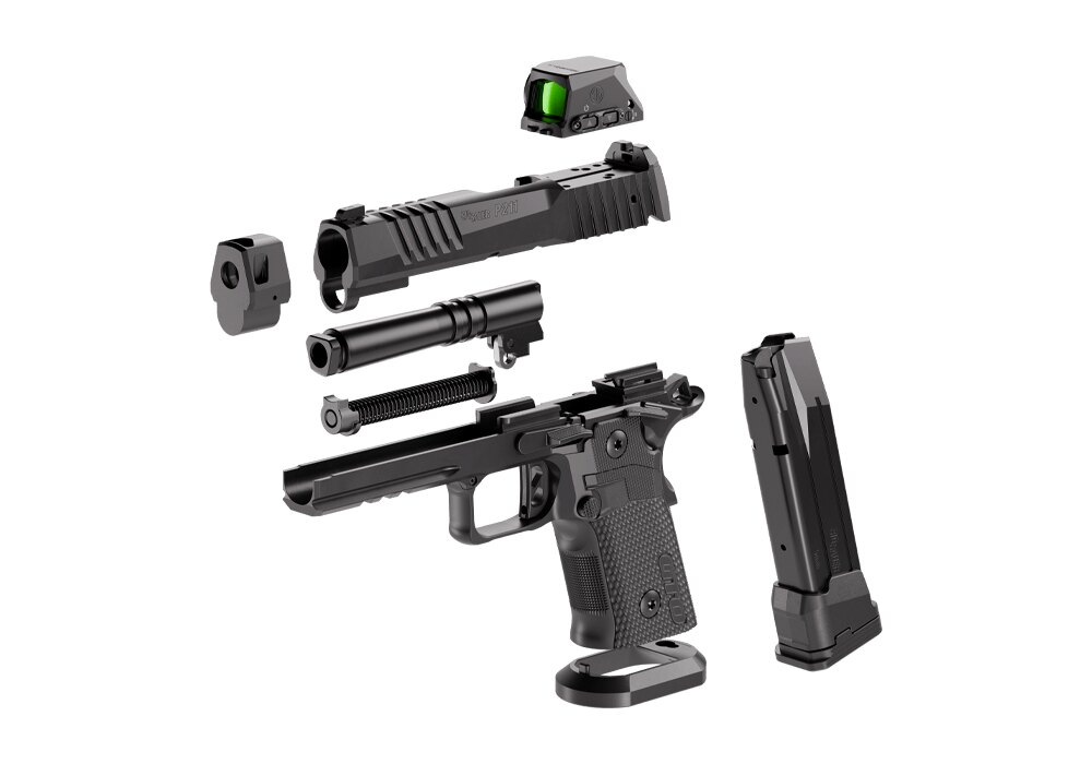 | Alte specifica?ii | Sunt incluse în livrare XRAY3 Vizoare de zi/noapte, interfață de montare colimatoare SIG-LOC PRO RX, trăgaci SAO, trăgaci scheletat plat, siguranță manuală, mâner G10, finisaj Nitron al culisei, colimator Romeo X |