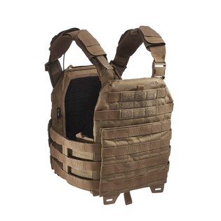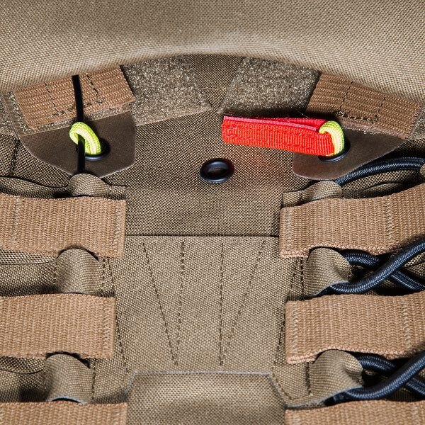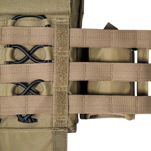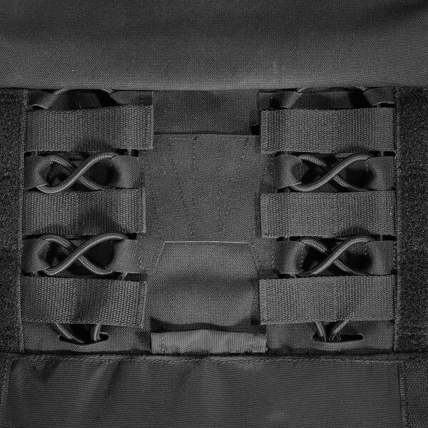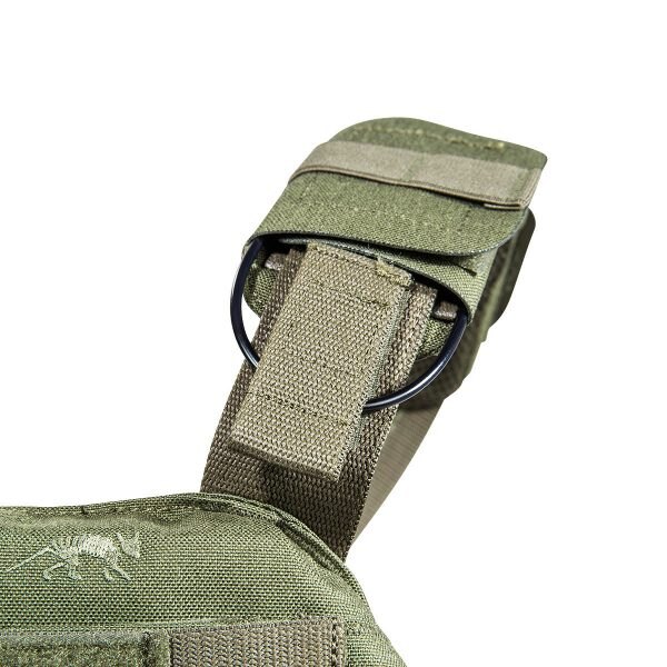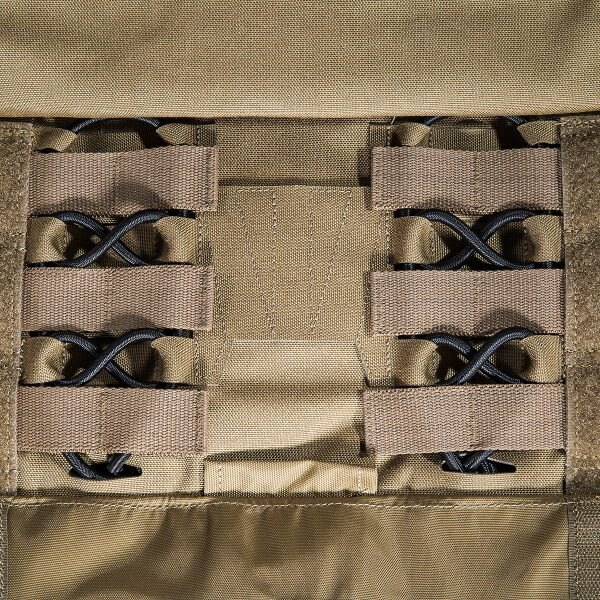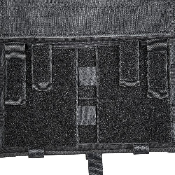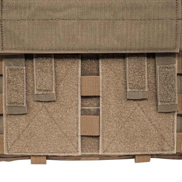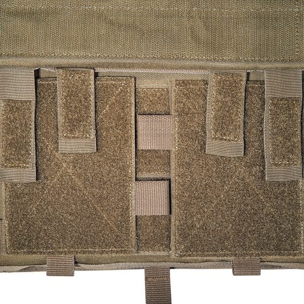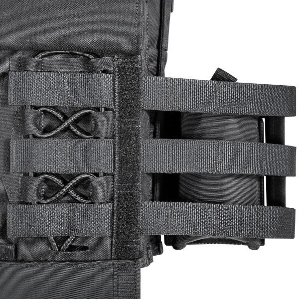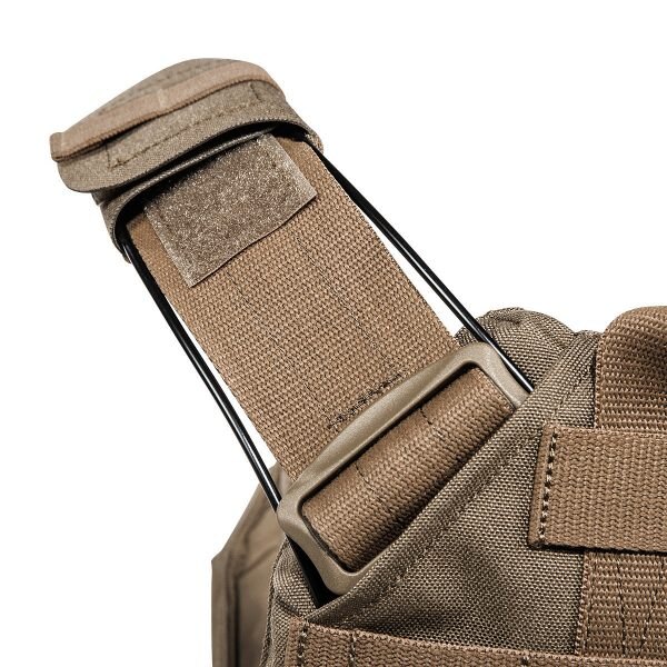 Purtarea confortabilă este asigurată de curelele de umăr căptușite cu lungime reglabilă, pe care se găsesc segmente cu velcro pentru fixarea cablajului sau a furtunului rezervorului de apă. Pentru îmbrăcarea ușoară sau necesitatea eliberării rapide, pe una dintre curele se află o cataramă specială SR, care poate fi plasată pe dreapta sau pe stânga, în funcție de nevoile dumneavoastră. Acest sistem îl veți folosi în special în caz de tratare a rănilor, nevoie de îmbrăcare rapidă sau schimbare a echipamentului. Partea frontală a suportului are pe piept un panou velcro pentru fixarea etichetei de identificare sau alte patch-uri. Clapeta frontală detașabilă și partea din spate a suportului sunt echipate cu un sistem MOLLE extins pentru extindere individuală cu buzunare și alte accesorii. Suportul MK IV este disponibil în două dimensiuni. Dimensiunea S/M este potrivită pentru plăci balistice de 30 cm x 25 cm. Dimensiunea L/XL este potrivită pentru dimensiuni de plăci de la 30 cm x 25 cm până la 34 cm x 33 cm. Plaque balistic se introduce în buzunarul cu închidere cu velcro. Pe partea din spate, sub sistemul MOLLE, există acces la reglajul lățimii secțiunilor laterale. Partea de piept și cea de spate a suportului au căptușeală plăcută care nu incomodează nici la sarcini mari. În spatele fiecărei secțiuni laterale se află un buzunar separat pentru stație de emisie-recepție cu acces facil la elementele de comandă. Un mare avantaj al acestui suport de plăci este și compatibilitatea cu Tasmanian Tiger Chest Rig LP. Datorită materialului rezistent Cordura, din care este fabricat, suportă utilizarea chiar și în cele mai dure condiții de operare.