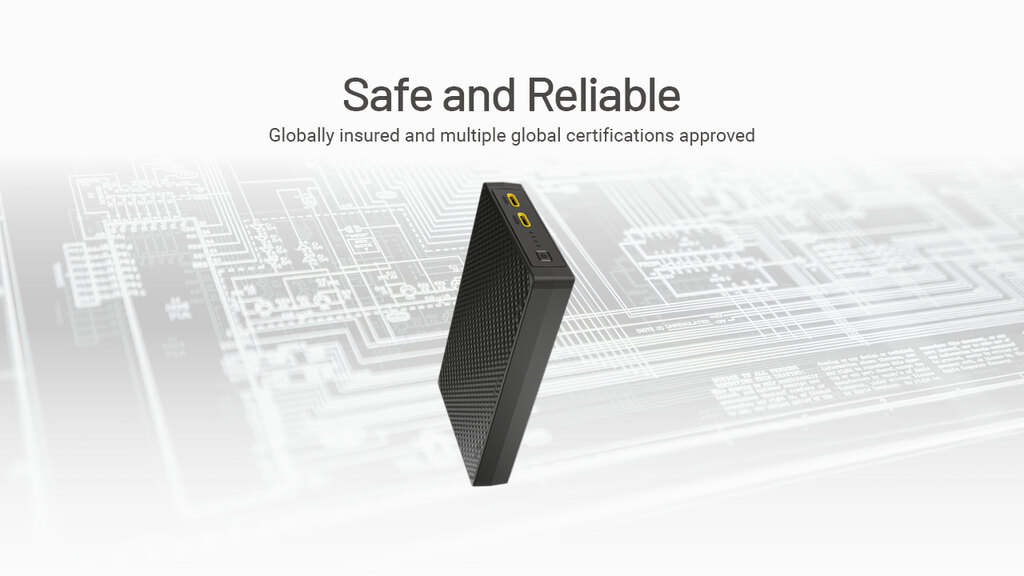 Cu o capacitate sub 100 Wh, respectă standardele aviatice, așa că trece fără probleme de controlul aeroportuar. Nivelul de încărcare este indicat de patru LED-uri, iar electronica integrată monitorizează supraîncălzirea, supratensiunea și scurtcircuitul. Totul este sub control, oriunde v-ați afla.
