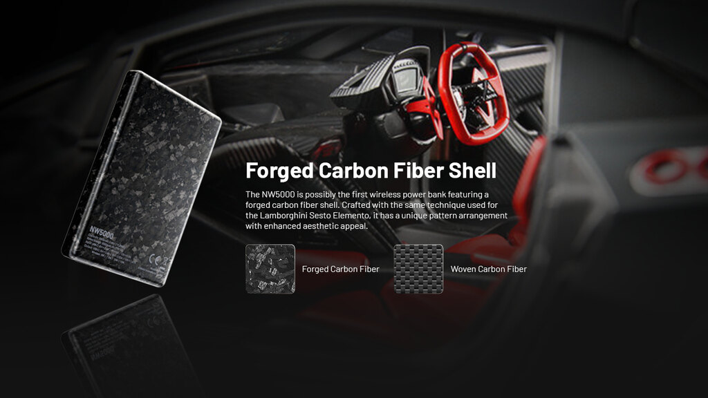 Corpul din fibre de carbon forjate nu este doar atractiv. Aceeași tehnologie este folosită și la supermașinile Lamborghini. Datorită acesteia, powerbank-ul NW5000 este ușor, durabil și totodată rigid ca un blindaj. Materialul său rezistă uzurii, amprentelor și coroziunii, astfel rămânând ca nou chiar și după ani de utilizare.
