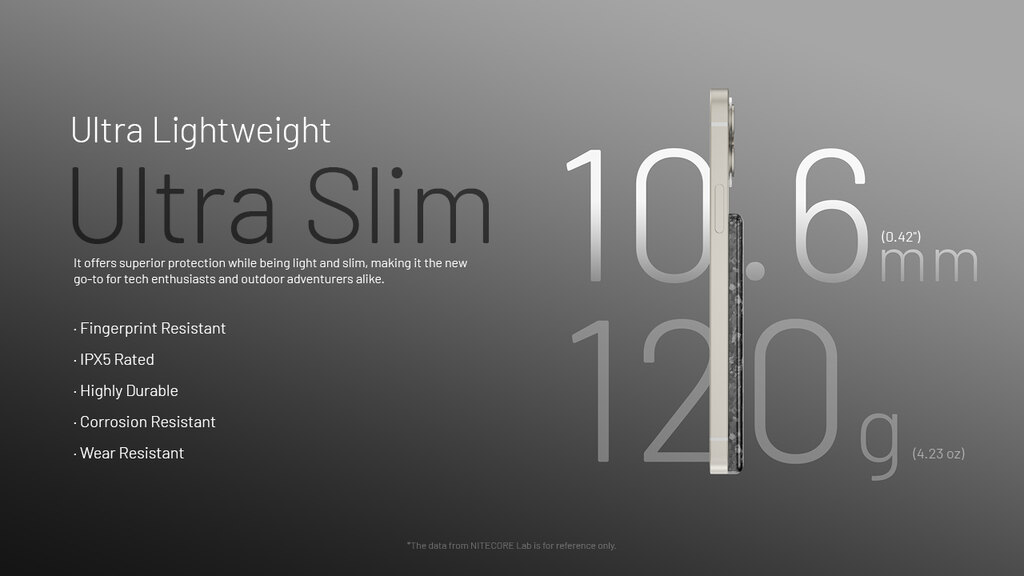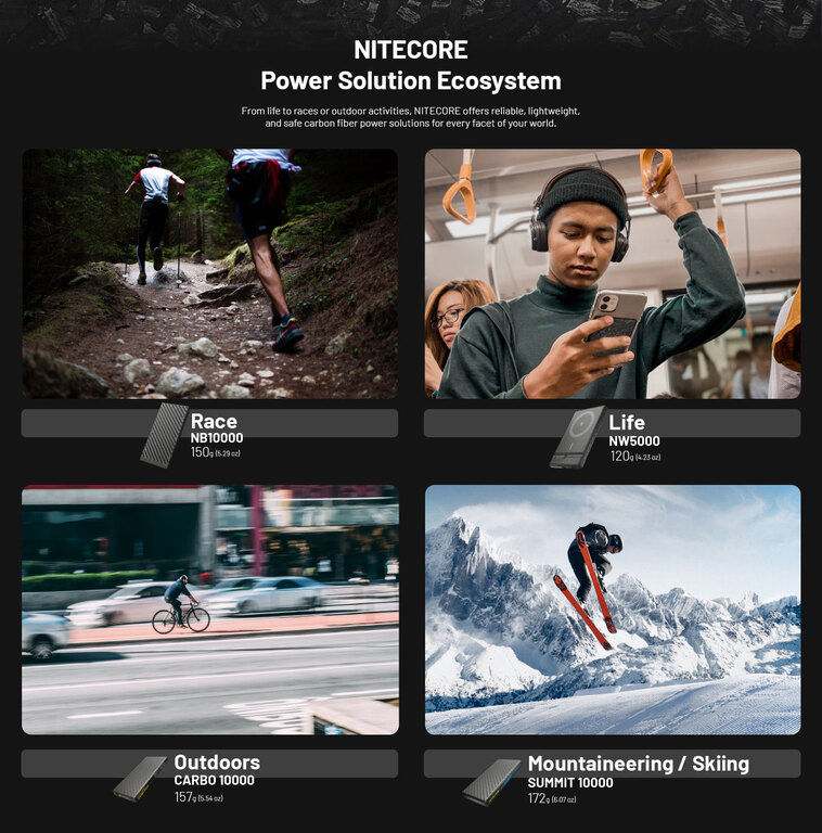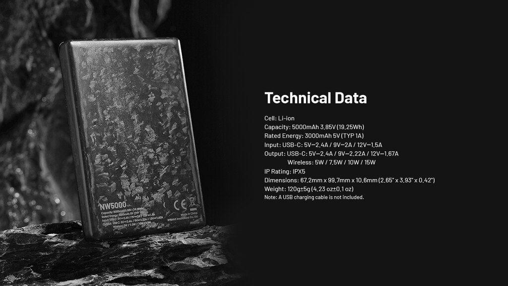 Nitecore NW5000 combină performanța, eleganța și practicitatea într-un corp din carbon forjat. Încărcă telefonul rapid, fără fir și prin cablu, se fixează magnetic iar greutatea sa este abia mai mare decât a unui smartphone. Partener ideal pentru călătorii, la lucru și pe teren – energie mereu la îndemână.