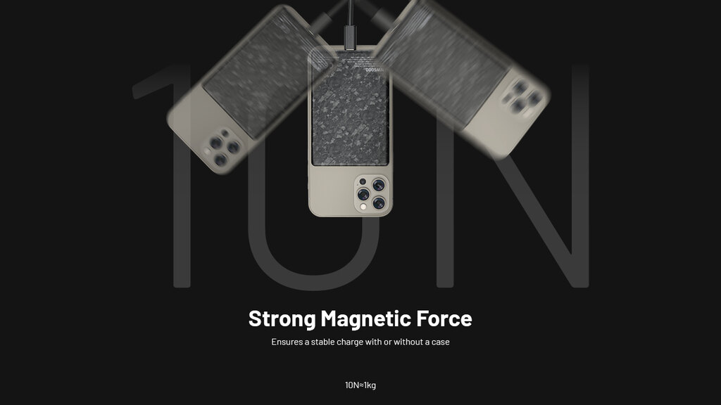 Încărcarea rapidă de până la 20 W prin cablu sau 15 W fără fir înseamnă că telefonul, căștile sau ceasul vor fi alimentate fără a aștepta. Prinderea magnetică asigură că totul rămâne exact acolo unde trebuie – chiar și atunci când vă mișcați. Doar fixați și încărcarea începe.
