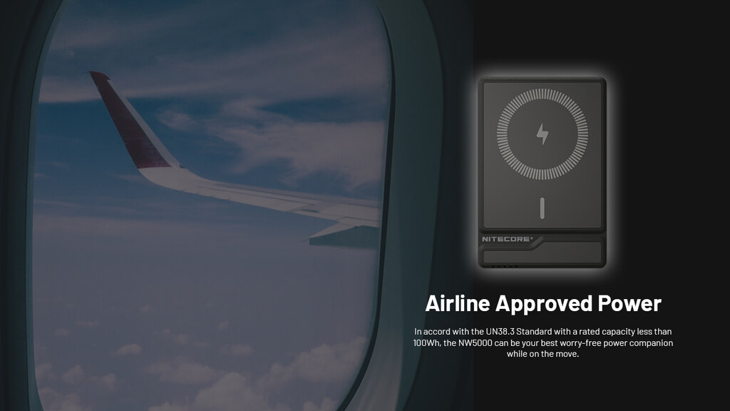 Capacitatea sub 100 Wh îndeplinește standardele aeriene UN38.3, așadar poate fi luată fără griji și în avion. Și datorită indicatorului LED, este mereu clar câtă energie mai este disponibilă. Nitecore NW5000 este o certitudine când nu vrei să rămâi fără energie – nici măcar în aer.
