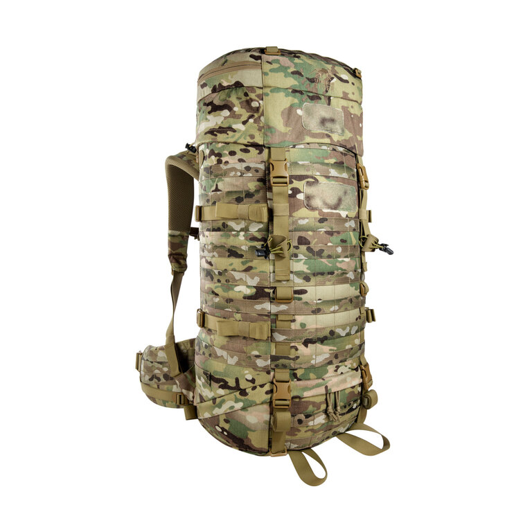 Panourile cu bucle ale sistemului MOLLE / PALS permit atașarea de accesorii suplimentare sau buzunare. Le găsiți nu doar în față și pe laterale, dar și pe capac, la baza rucsacului sau pe cureaua lombară. Pe două panouri velcro de pe partea frontală puteți plasa patch-uri sau identificări. Opțiunile modulare ale rucsacului sunt completate de suporturi elastice pentru bețe de trekking sau colțari.