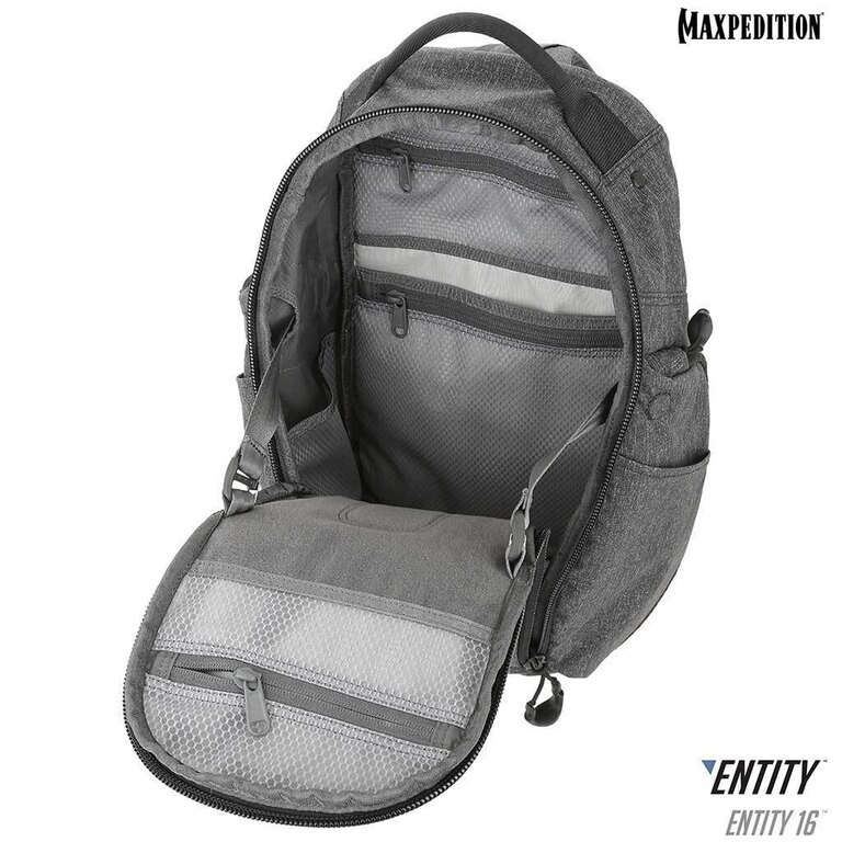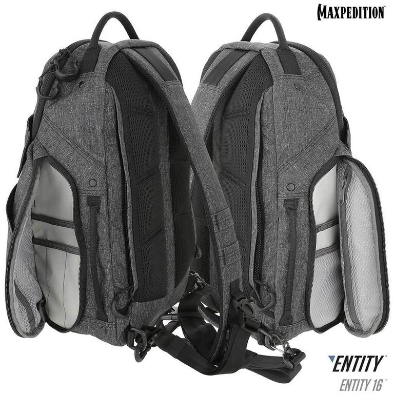 Rucsacul Entity 16™ CCW – Enabled Maxpedition® 16 L este un rucsac tactic cu un design curat, care vă asigură că adevărata sa funcție nu va fi observată în public. Rucsacul combină funcționalitatea tactică, calitatea înaltă și un design modern. Datorită acestor caracteristici, este un rucsac ideal pentru personalul serviciilor de securitate care operează frecvent în oraș și nu doresc să atragă atenția inutilă a trecătorilor.