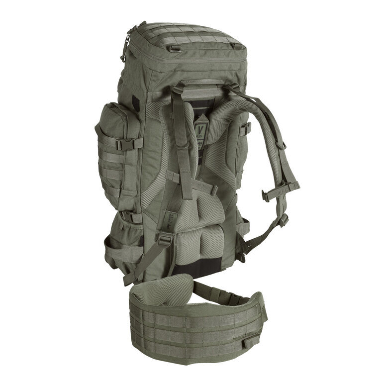 | Specificații suplimentare | Curele de compresie laterale (2 pe fiecare parte) Capac cu înălțime reglabilă asigurat cu curele cu cataramă rapidă Buzunar exterior cu închidere cu fermoar cu două căi pe capac. Buzunar interior pentru documente în capac Camera principală împărțită de un separator în 2 părți accesibile separat - de sus sub capac și de jos sub clapă, închidere cu fermoar dublu acoperit de o bandă și asigurat cu curele cu cataramă rapidă Porturi pentru cabluri electronice / pentru antenă Compatibil cu sistemul de hidratare 2 buzunare laterale superioare cu fermoar cu două căi 2 buzunare laterale inferioare cu deschidere elastică (pentru sticlă) Montură compatibilă MOLLE în față (4 rânduri de câte 5 bucle), în față jos (4 rânduri de câte 8 bucle), pe buzunarele laterale (3 rânduri de câte 3 bucle) și pe capac (3 rânduri de câte 6 bucle) Panouri cu velcro pe partea frontală (1 sus sub capac și 1 pe rândul superior al legăturii modulare) Fixare pentru bețe de trekking, pioleți și alte obiecte lungi în față Bucles pentru fixarea echipamentului pe capac și jos pe partea din față. Camuflaj IRR - conform normelor TL 8305-0278 și TL 8305-0281 ale Bundeswehr - cerințe pentru materiale în ceea ce privește proprietățile lor de camuflaj în infraroșu (IRR 650 nm la 1 250 nm / 10% la 42%) |