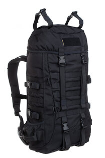 Pe laterale se găsesc două buzunare cu acces superior deschis și margine elastică, tipice pentru depozitarea unei sticle de băut. Pe partea din față a capacului este disponibil un panou velcro pentru plasarea unui etichete de identificare, numelui, steagului sau altui patch preferat. Pe partea din față a rucsacului sunt montate două curele de compresie / siguranță cu 2 catarame rapide și alte patru curele de compresie / siguranță cu cataramă rapidă sunt pe laterale (câte două pe fiecare parte). Curelele sunt utilizate pentru compresarea rucsacului umplut și pentru fixarea altor echipamente. Chingile compatibile MOLLE pe lateralele rucsacului, pe partea din față și deasupra capacului sunt utile pentru fixarea altor etuiuri sau buzunare cu curele compatibile pe partea din spate. Curelele și chingile astfel cresc și mai mult capacitatea deja foarte bună a rucsacului. Pe lateralele rucsacului sunt amplasați, de asemenea, suporturi pentru transportul schiurilor.
