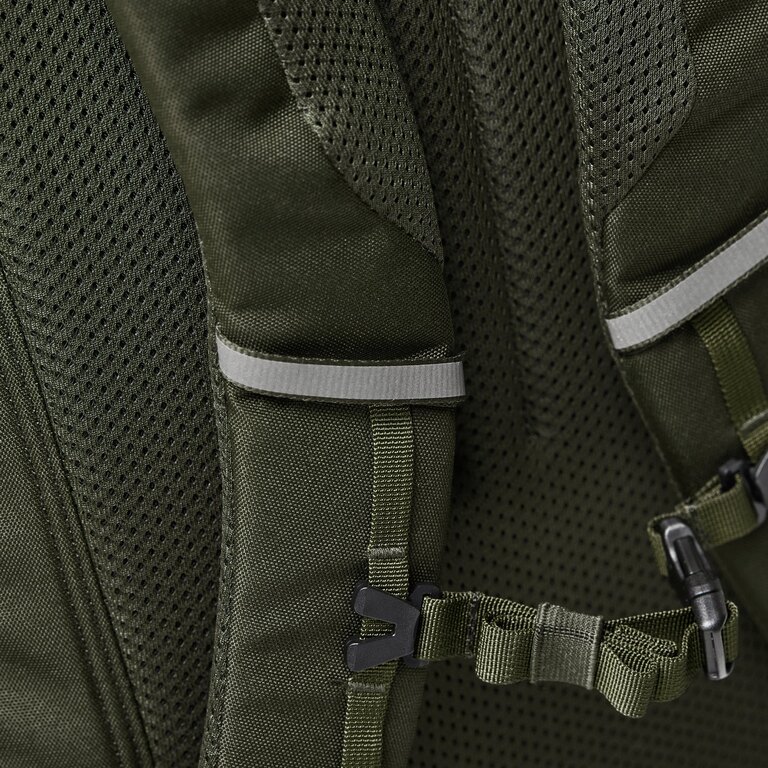 Corpul rucsacului este fabricat din țesătură rezistentă Oxford din poliester reciclat, care rezistă atât la abraziune cât și la ploaie. Suprafața este hidrofobă și nu conține PFAS, protejând astfel atât conținutul cât și mediul înconjurător.