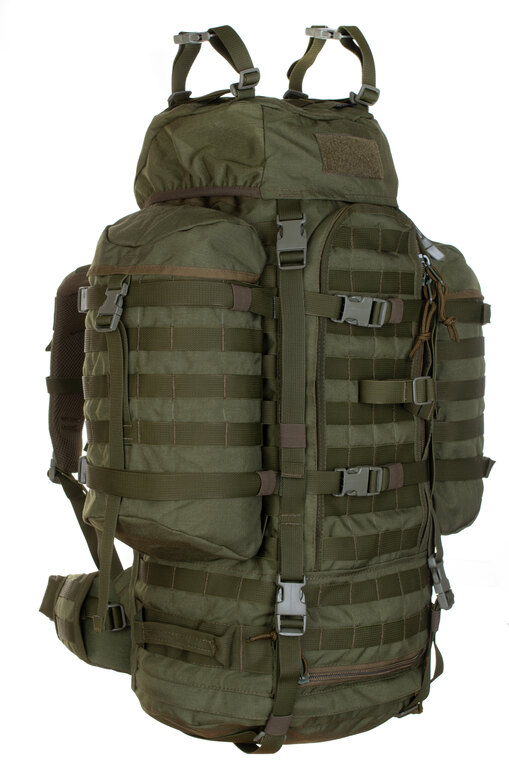 Probabil nu surprinde pe nimeni că rucsacul este compatibil MOLLE. Cureaua se află atât pe ambele părți, cât și în partea din spate. Fără probleme, astfel, puteți atașa echipamente compatibile MOLLE la rucsac – de exemplu, diverse carcase, buzunare sau flacoane de câmp. Pentru atașarea altor echipamente folosesc și curelele de compresie, deși funcția lor principală este reducerea volumului rucsacului. Mulțumită curelelor, este ușor să atașați, de exemplu, un izopren la rucsac.