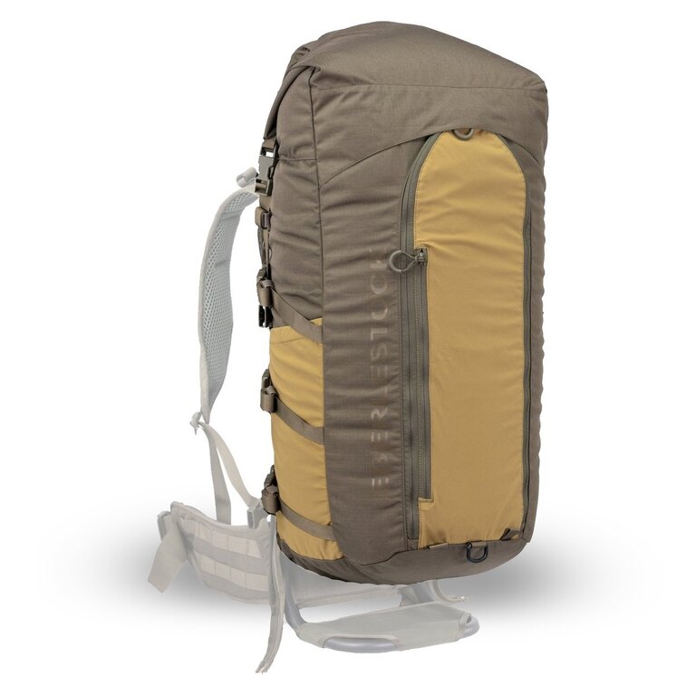 Montarea rucsacului suplimentar Ultralight Vapor 5000 Eberlestock® este foarte ușoară. Îl poți fixa rapid pe cadru cu ajutorul unui fermoar rezistent YKK. Pentru o fixare stabilă, are de asemenea curele practice pe ambele părți.