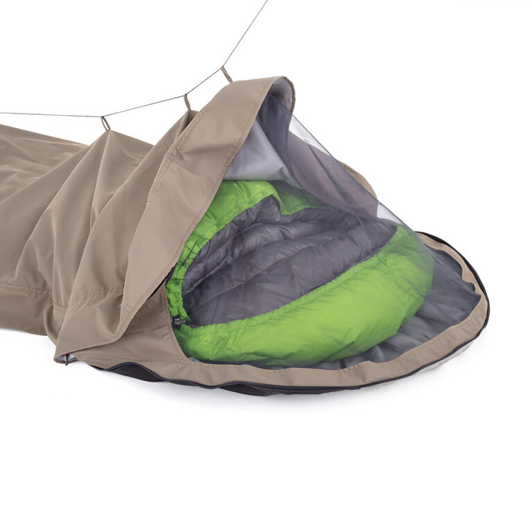 Sistemul cu patru curse de pe fermoarul principal în formă de J permite deschiderea de sus și de jos și crearea de deschideri de ventilație exact acolo unde aveți nevoie. Fiecare cursor are un tragător colorat diferit pentru o orientare ușoară chiar și în întuneric. O caracteristică interesantă este posibilitatea de a alege partea fermoarului în funcție de faptul că sunteți dreptaci sau stângaci. Și dacă doriți să scoateți plasa de țânțari pentru a nu vă deranja – este nevoie doar de o mișcare din interior.