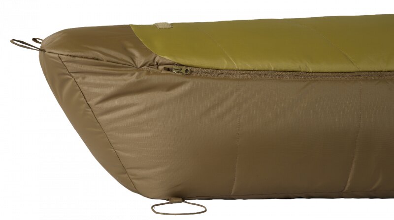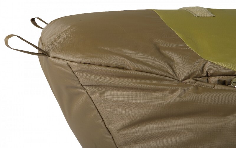 Partea inferioară a sacului Chimera este rezistentă la umezeală. Prin urmare, solul umed nu-ți va afecta confortul. Metoda unică de cusătură a Chimerei elimină "cusăturile reci" și previne pierderea căldurii. Extinderea sacului de dormit în zona pieptului și a pelvisului crește semnificativ proprietățile termoizolante și oferă un confort sporit. Confortul este susținut, de asemenea, de baza anatomică, care permite mișcarea naturală a picioarelor în sacul de dormit.