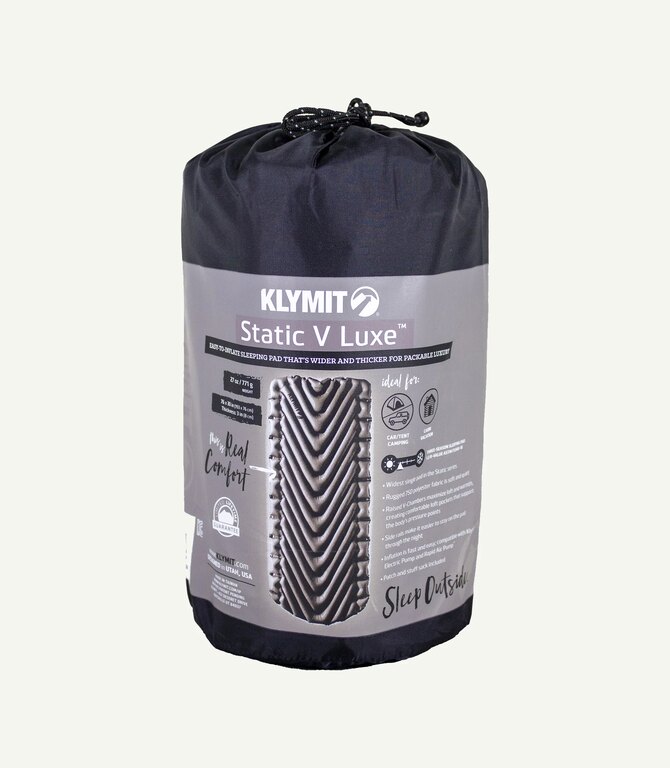 Klymit Static V luxe oferă un spațiu generos pentru un somn plăcut chiar și în timpul campingului de lungă durată. Este deosebit de potrivită pentru fiecare camper care are umeri mai lați sau se mișcă mult în timpul nopții. Este mai lungă și mai lată decât modelele clasice ale acestui brand american. În ciuda dimensiunii confortabile a suprafeței de dormit, rămâne ușoară și, după ce este împachetată, are dimensiuni mici. Designul patentat al camerelor în formă de V asigură un somn plăcut pe spate, pe lateral sau pe burtă. Canalele ingenioase garantează distribuția uniformă a aerului în camerele saltelei, ceea ce duce la optim confort termic. În timpul mișcării, nicio parte a saltelei nu se turtește. Benzile laterale profilate ajută la menținerea corpului în poziție dreaptă și împiedică alunecarea în afara covorașului.