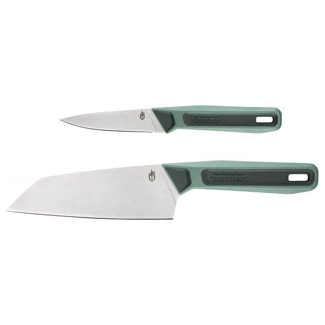 Gerber a echipat setul cu două cuțite de bucătărie – unul mai mic pentru lucrări de precizie și unul mai mare pentru pregătirea principală. Lama din oțel inoxidabil face față tăierilor frecvente și își menține ascuțișul chiar și prin utilizare frecventă. Mânerele din polipropilenă cu partea cauciucată stau bine în mână și nu alunecă, chiar și atunci când lucrați cu ingrediente ude.