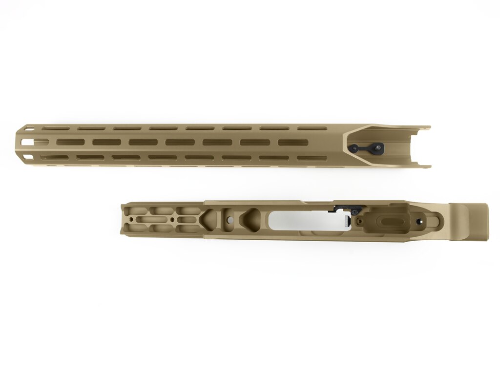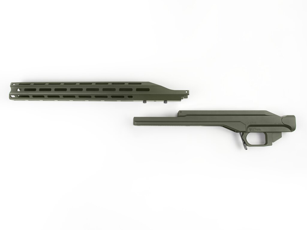Acest set nu a fost conceput superficial. Scopul a fost de a aduce Mosinului ergonomia, modularitatea și confortul unei arme moderne – păstrând totodată ceea ce face Mosin să fie Mosin. Rezultatul este un corp frezat din aliaj 7075, un suport liber pentru țeavă și posibilitatea de a ajusta ansamblul în funcție de stilul propriu de tragere.
