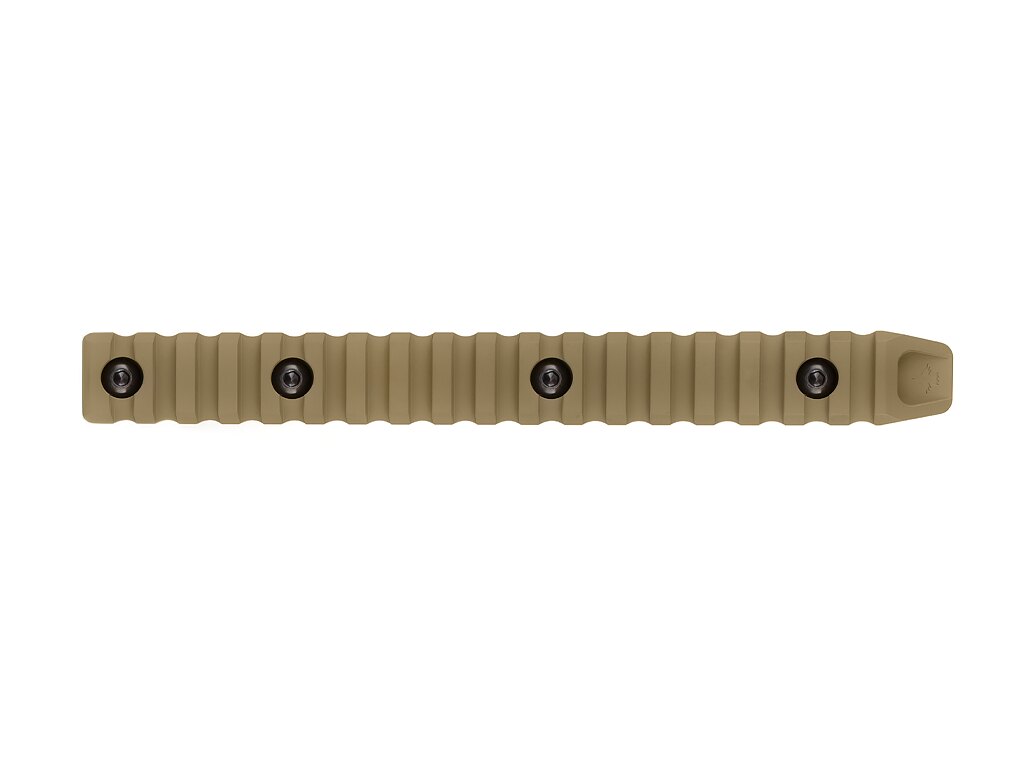 Orice fantă M-LOK standard este suficientă – și șina se potrivește perfect. Cele optsprezece fante Picatinny oferă un spațiu extrem de lung pentru lanternă, laser, mâner sau alte accesorii pe care doriți să le aveți mereu la îndemână. Fără ajustări suplimentare, fără trucuri.