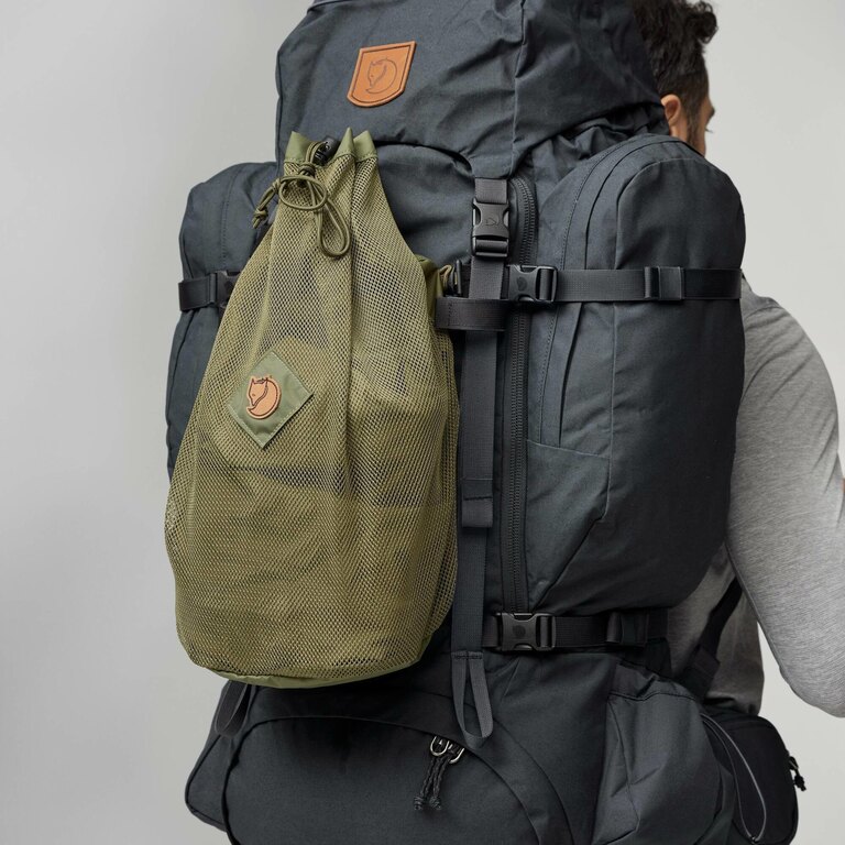 Geanta Fjällräven Singi Mesh Bag poate fi purtată direct ca un rucsac pe spate sau pur și simplu atașată altor rucsacuri ale producătorului suedez, inclusiv modelelor din seriile Singi, Kajka, Värmland și Lappland. Conținutul genții nu va cădea datorită închiderii cu șnur.