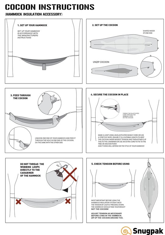 Sistemul de dormit pentru hamac Hammock Cocoon de la compania britanică Snugpak se bazează pe tehnologia preluată din sacii de dormit ai acestui brand. Este o soluție inovativă care elimină comprimarea obișnuită a sacului de dormit și a hainelor sub presiunea hamacului întins.