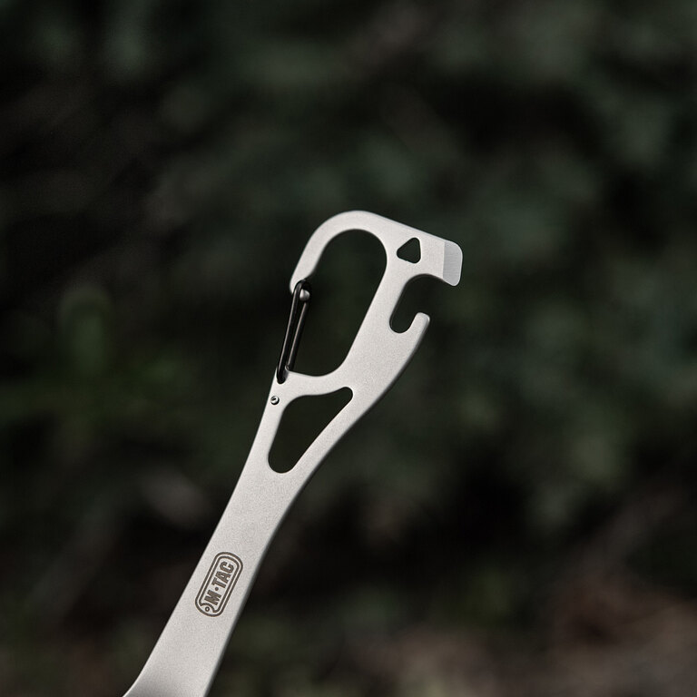 Grație sporkului multifuncțional M-Tac, vă puteți hrăni și bea confortabil, indiferent de locul în care vă aflați. Îl puteți folosi ca linguriță și ca furculiță, iar pe partea opusă a mânerului se află chiar și un desfăcător pentru sticle, astfel încât să vă puteți bucura de băutura preferată în timpul mesei. Instrumentul din oțel inoxidabil include chiar și o carabină, ceea ce vă permite să îl agățați de rucsac sau chiar de curea.