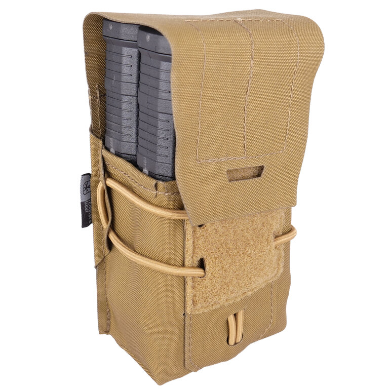 Punga dublă pentru încărcătoare calibrul .308 Templar’s Gear® găzduiește 2 încărcătoare pentru calibrul .308 cu o capacitate de 20 de cartușe. Este destinată în special proprietarilor de arme SR25, G3, FN FAL etc. Închiderea pungii este asigurată de un velcro de calitate, care facilitează accesul rapid la punga și te asigură că încărcătoarele nu vor cădea sub nicio formă. În afară de velcro, încărcătoarele sunt fixate suplimentar cu un cordon elastic, care menține forma pungii și permite modificarea formei acesteia pentru a depozita și alte echipamente decât încărcătoare. Punga este fabricată din materiale ușoare, dar foarte rezistente, astfel rezistă și la utilizare mai puțin delicată. Datorită sistemului MOLLE, poți atașa punga la orice echipament sau parte a echipamentului care este compatibilă cu sistemul MOLLE. O alegere excelentă pentru toți cei care caută o pungă simplă, dar funcțională și de calitate pentru două încărcătoare.