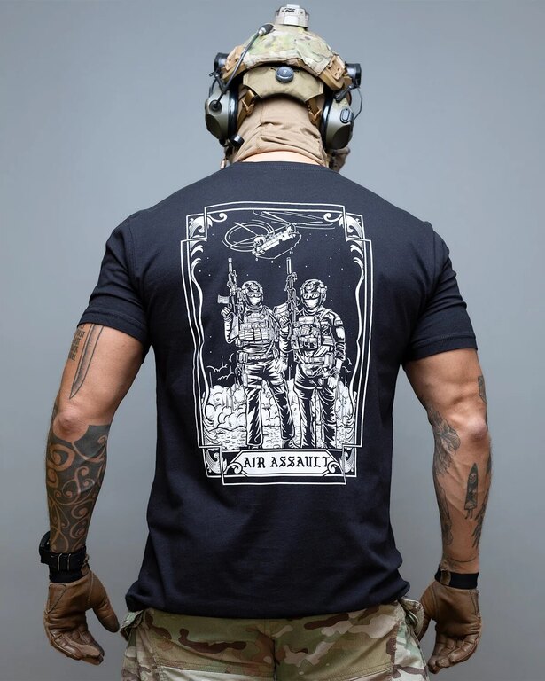 Designul tricoului Air Assault reprezintă un parașutist olandez și unul german, simbolizând fraternitatea internațională și curajul unităților de parașutiști. Acest motiv a fost creat în colaborare cu @the__trace, asigurând autenticitate și respect celor care servesc.