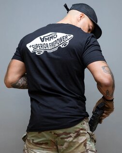 Muniția nu este niciodată suficientă. Tricoul Ammo de la Brothers in Arms combină stilul atemporal cu durabilitatea, care rezistă în orice situație. Fabricat din bumbac premium 100%, imprimat în Germania și proiectat pentru a rezista la antrenamente, poligonul de tragere și o bere de seară.