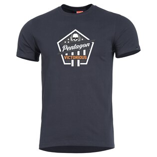 Tricoul oferă utilizatorului calitate de primă clasă, este plăcut la atingere și conferă o senzație catifelată. Țesătura se usucă rapid și astfel previne mirosurile neplăcute. Manecile scurte și decolteul clasic rotund fac tricoul potrivit pentru zilele calde până la fierbinți. Pe piept, tricoul are un motiv - logo-ul Pentagon cu inscripția VICTORIOUS. Pe mâneca stângă este cusută o etichetă Pentagon.