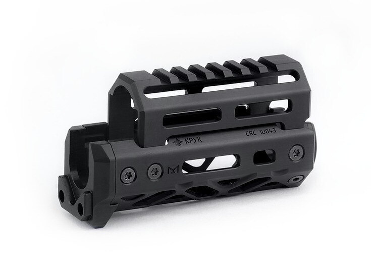 Piată înainte Short M-LOK AKS-74U Kpyk oferă o interfață de montare modernă fără a necesita intervenții asupra armei. Sloturi M-LOK pe trei laturi. Piată fixă din aluminiu. Posibilitatea de a folosi doar partea de jos o transformă într-o soluție practică, care se menține solidă chiar și în utilizări intense.