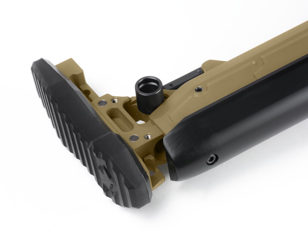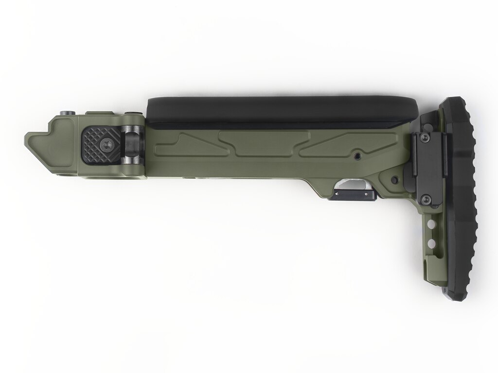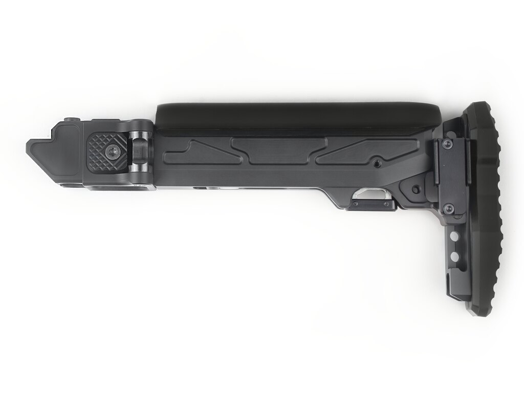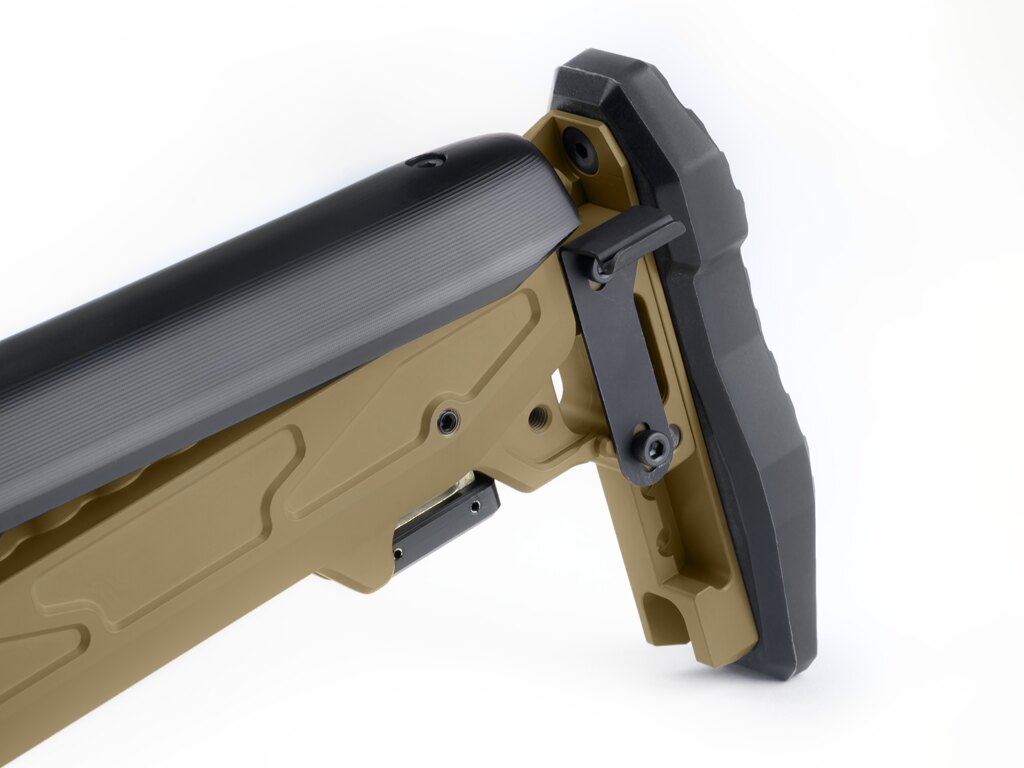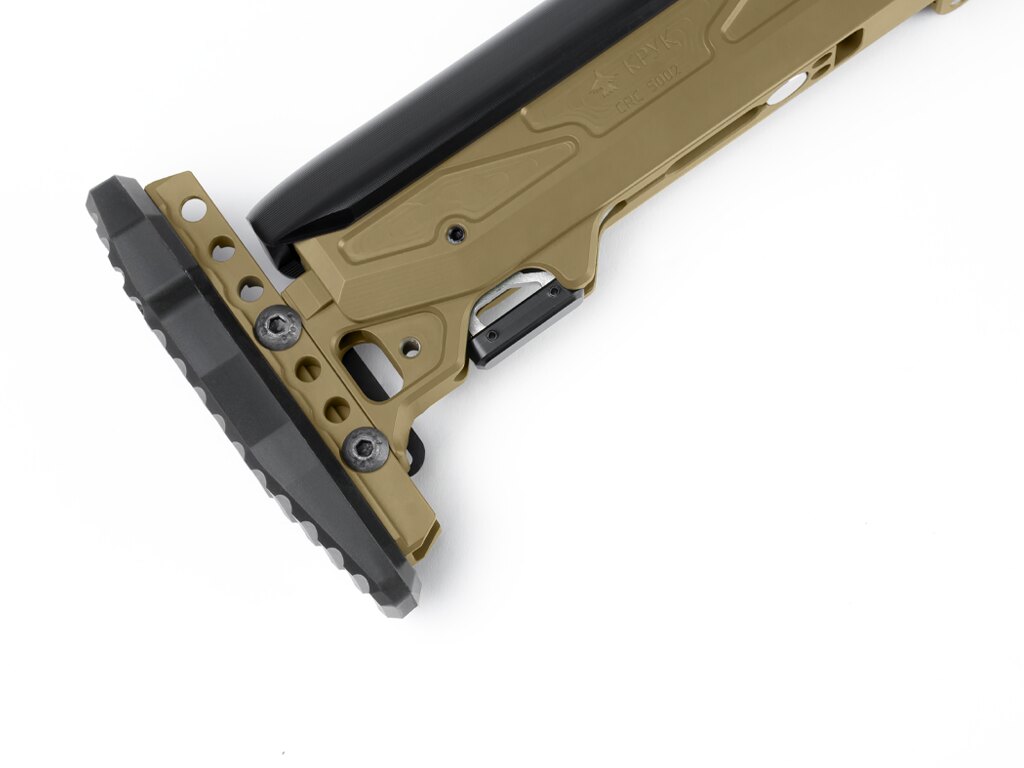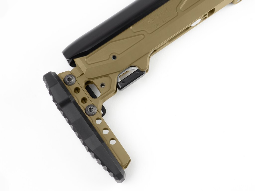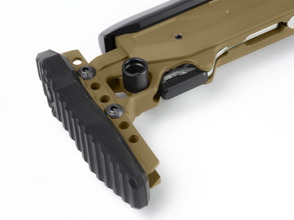 Patul permite reglarea lungimii, înălțimii obrazului și înălțimii cotierei – exact conform nevoilor trăgătorului. Fiecare dintre aceste elemente are propriul interval și sistem de blocare. Astfel, se creează o poziție de tragere stabilă fără a fi nevoie de improvizație. Patru poziții ale obrazului și un mare interval de alegere a lungimii sau înclinării cotierei permit ajustări fine.
